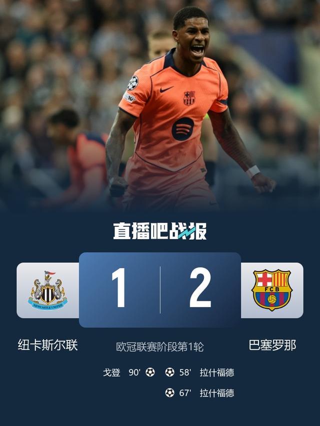 凭借拉什福德的双响,巴萨2-1击败纽卡拿下欧冠开门红!