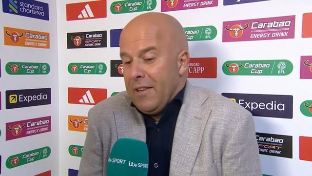 直播吧09月24日宣 联赛杯第3轮,利物浦2-1险胜南安普顿,埃基蒂克在第85分钟进球后脱衣庆祝,吃到第二张黄牌被罚下。赛后主帅斯洛特接受ITV的采访时,谈到了球员的这一行为。