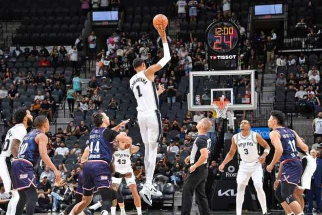 不过,就算是双方实力差别很大,马刺队方面,也是认真对待这场比赛,很多主力球员都是悉数出场,比如,NBA顶级球星文班亚马就首发出场,一共打了16分23秒。从这点也充分说明了,马刺队是给足了广州队面子。