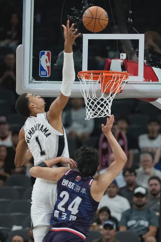 面对马刺,陈国豪半场14分!文班亚马也登场了!