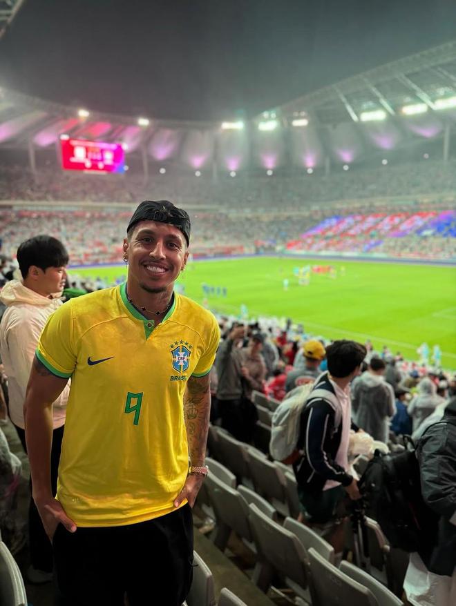 变成球迷,泰山外援克雷桑、马德鲁加现场看巴西vs韩国比赛