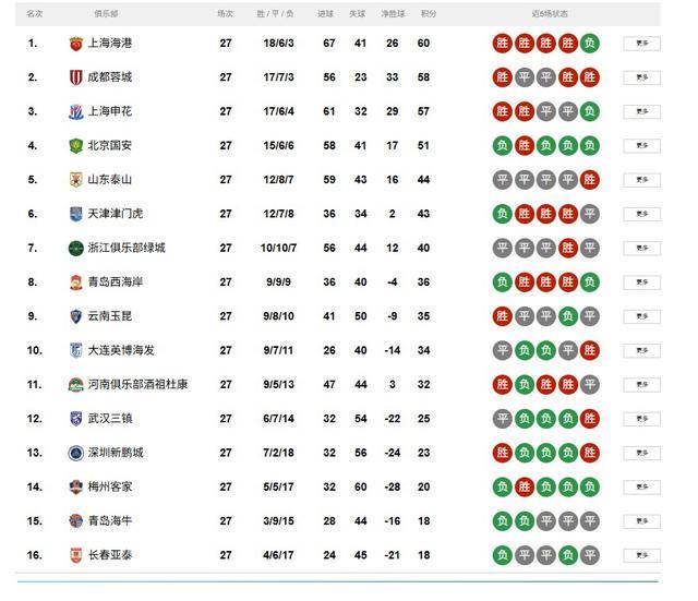 第27轮保级区仅深圳新鹏城拿分,中超降级悬念依然扑朔迷离