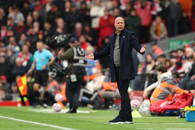 显然,这座英超冠军奖杯很难分清功劳——斯洛特零引援零补强完成壮举,但阵容和战术完全是克洛普的印记。