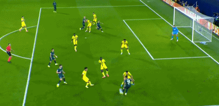 萨维尼奥禁区右侧传中,落点恰到好处,B席插上头槌建功,2-0!