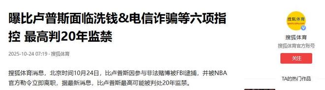 NBA这边反应也快,比卢普斯和罗齐尔一被抓,联盟就发了声明,直接勒令他俩暂停职务离队,态度比一开始说的“配合调查”强硬多了。