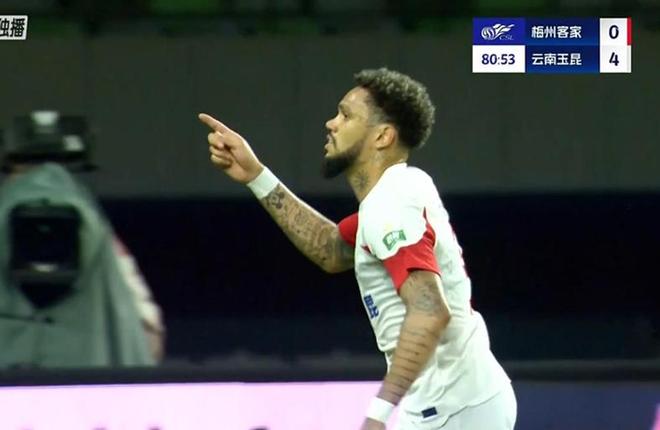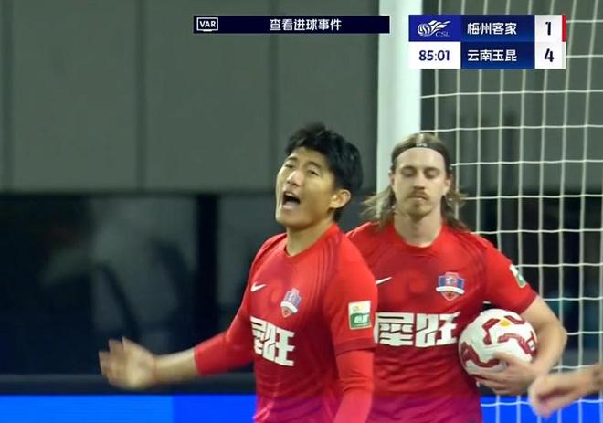 第85分钟,杨瑞琪破门,扳回一城,VAR介入,进球有效,梅州客家1-4落后。