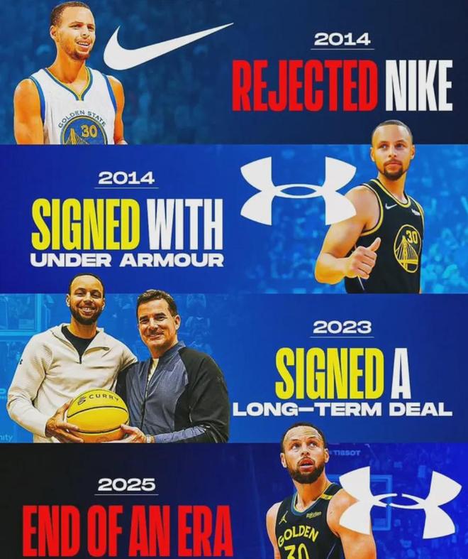 但告别的不是勇士,而是他的代言品牌安德玛。