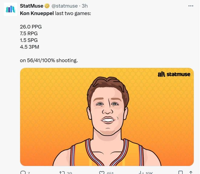 无论是从数据产量,还是个人效率,只要克努佩尔能够延续目前的表现,他大概率将预定最佳新秀奖项。