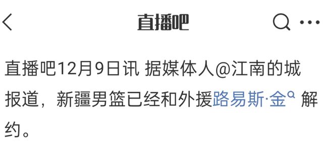 CBA最新消息!新疆男篮裁掉路易斯金,威尔斯或离开辽宁